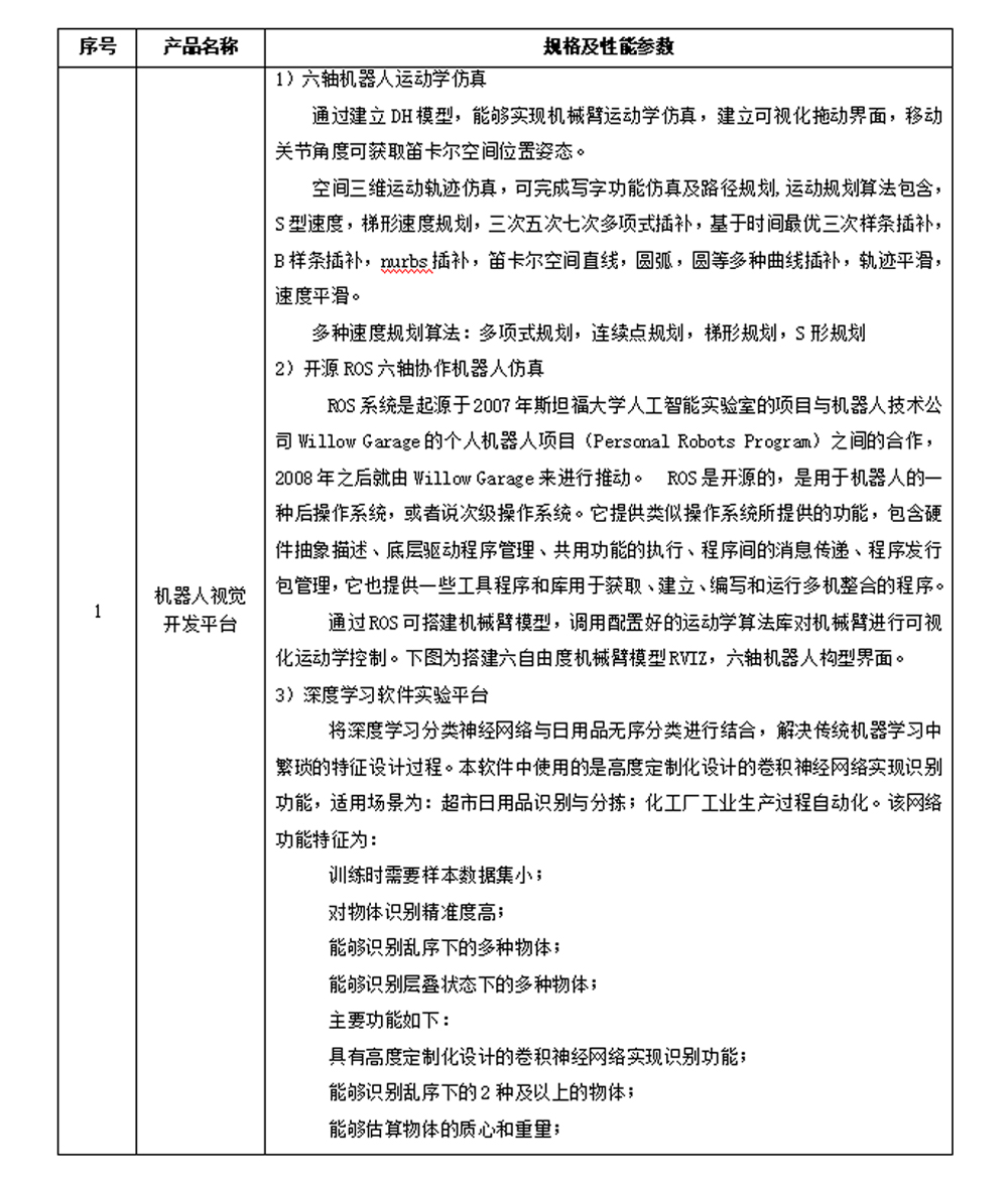 機器人視覺(jué)開(kāi)發(fā)平臺主要由六軸協(xié)作機械臂、3D視覺(jué)抓取系統、工業(yè)智能視覺(jué)系統、PLC柔性自動(dòng)化系統和深度學(xué)習軟件構成;搭載智能實(shí)時(shí)機器人操作系統,可靈活擴展多種機器人應用;支持實(shí)訓和科研兩大功能屬性;滿(mǎn)足機械電子、人工智能、機器人工程、計算機等專(zhuān)業(yè)學(xué)科的教學(xué)和科研需求。
