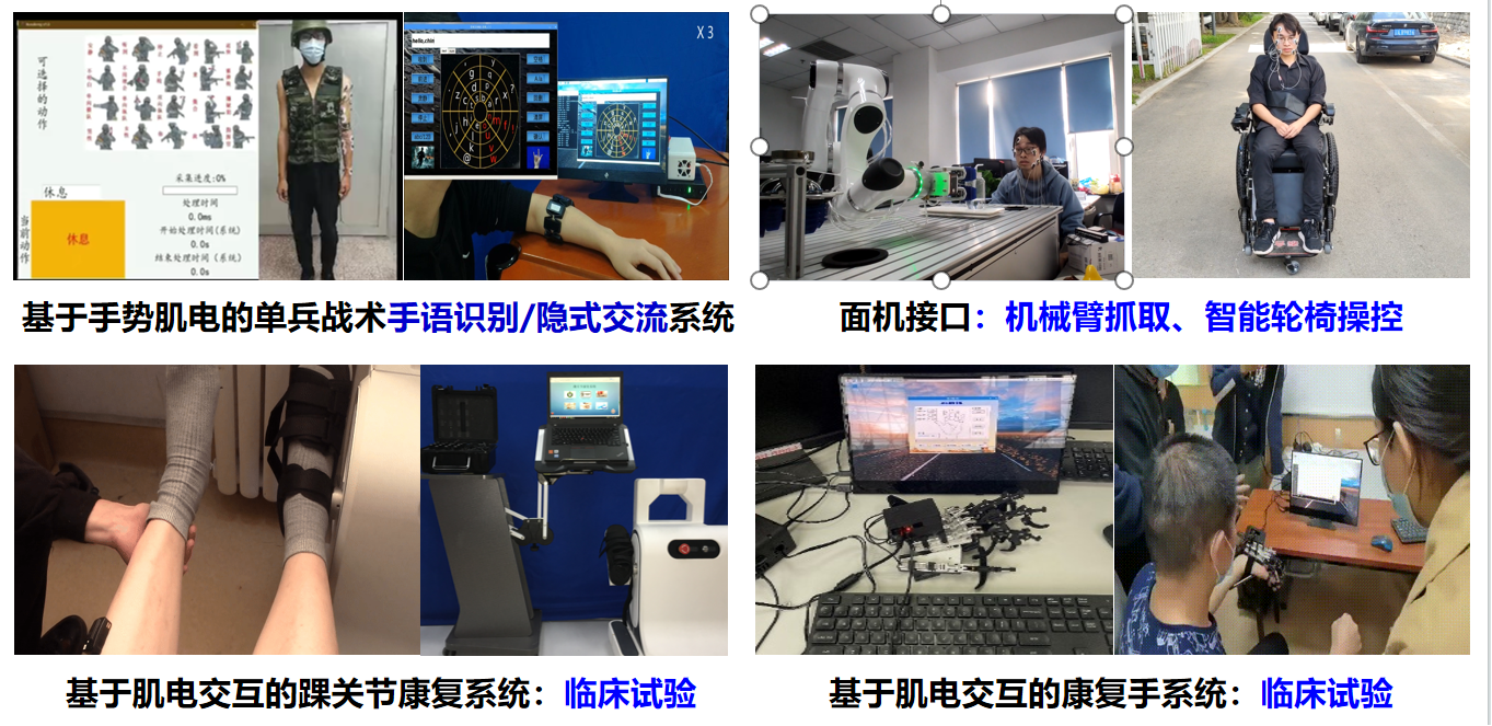 智能肌電交互系統中表面肌電意圖識別技術(shù),是人機融合智能技術(shù)發(fā)展的重要支撐技術(shù),在智能假肢、康復機器人等領(lǐng)域具有重要的應用價(jià)值。面向軍事需求、醫療康復等典型應用場(chǎng)景,研制基于肌電解碼的人機交互系統并開(kāi)展單兵靜默式交流、面部肌電操控、康復系統交互等實(shí)驗驗證。